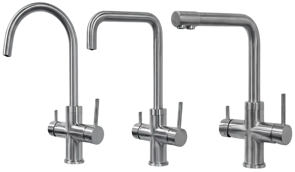 Eine Armatur für alle Wasserarten: warmes und kaltes Leitungswasser sowie stilles, still gekühltes und sprudelndes Trinkwasser über ein angeschlossenes Sprudelgerät. Die GIULIA INOX überzeugt durch massive Edelstahlqualität, klare Trennung der Wasserwege und ist wählbar mit L-, C- oder U-Auslauf.