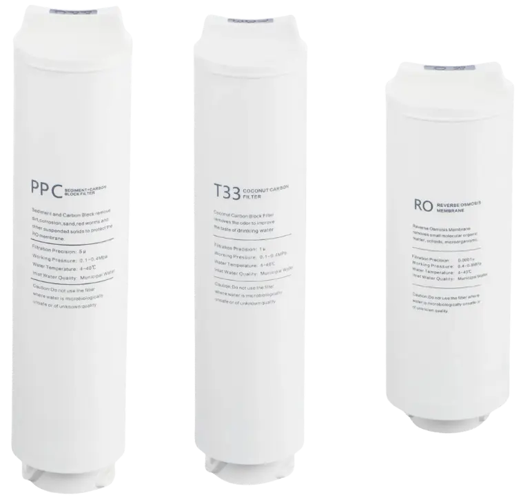 PPC-Vorfilter, RO-Membran und T33-Nachfilter sorgen für sauberes, geschmacklich optimiertes Osmosewasser.