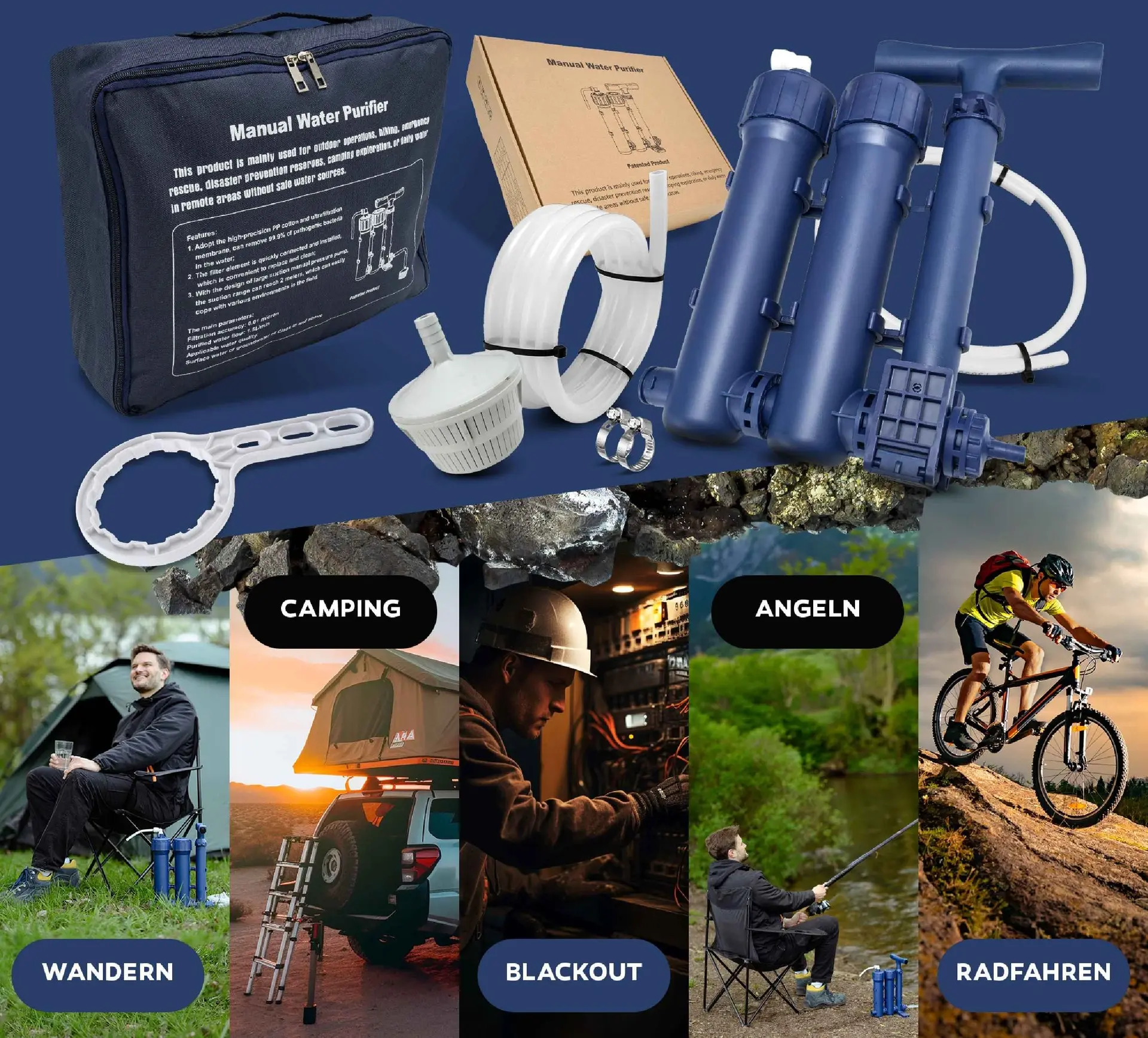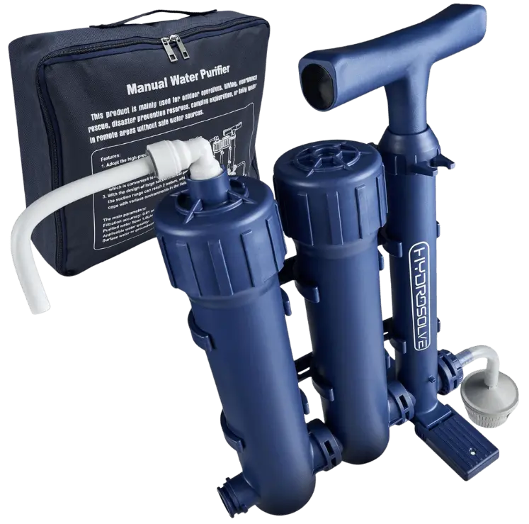 HYDROSOLVE Outdoor Tragbarer Wasserfilter Camping Notfall Wasseraufbereitungssystem mit Handpumpe Filtration für Wandern und Camping