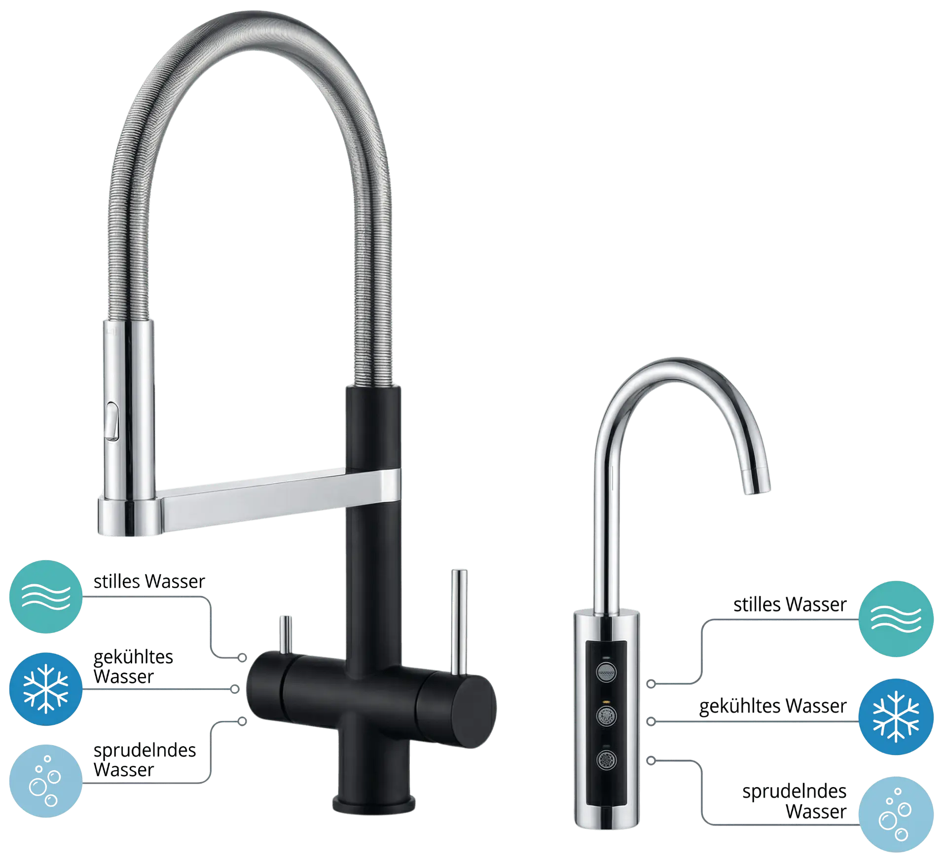 Sprudelwasser 1,5 l/min, stilles und gekühltes Wasser