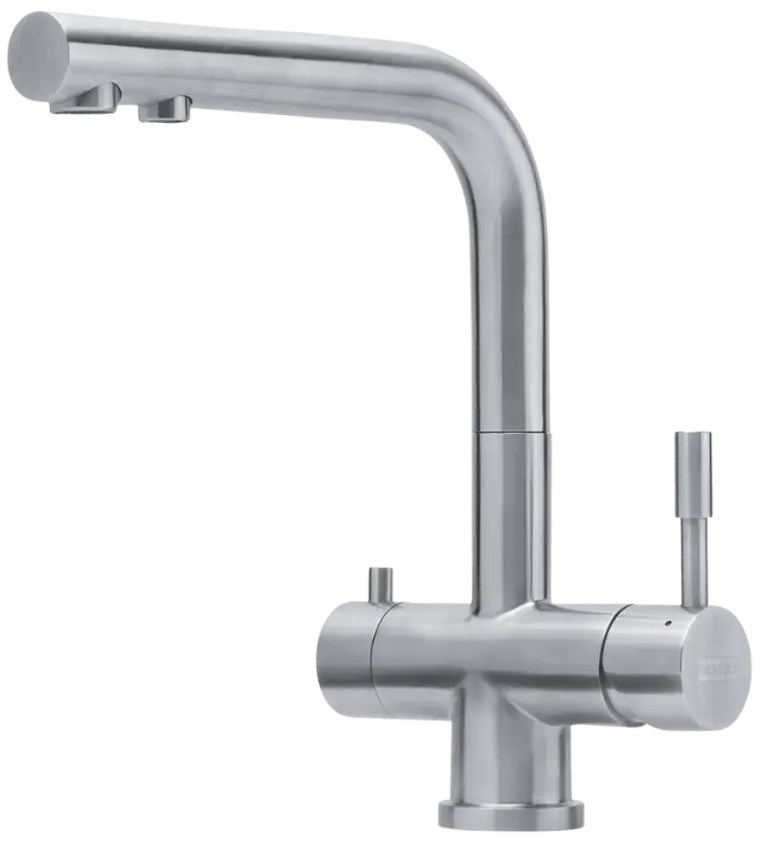 Warm- und Kaltwasser wie bei einer klassischen Küchenarmatur, ergänzt durch eine separate, hygienisch getrennte Leitung für gefiltertes Trinkwasser. Der FRANKE 3-Wege-Wasserhahn überzeugt durch massiven Edelstahl, klare Bedienlogik und bewährte Markenqualität – ideal für Küchen mit Trinkwasserfiltration.