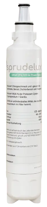 Nur die Verwendung von Original SPRUDELUX® Ersatzfilter gewährleistet die volle Filterleistung und den sicheren Betrieb der SPRUDELUX POWER SODA.