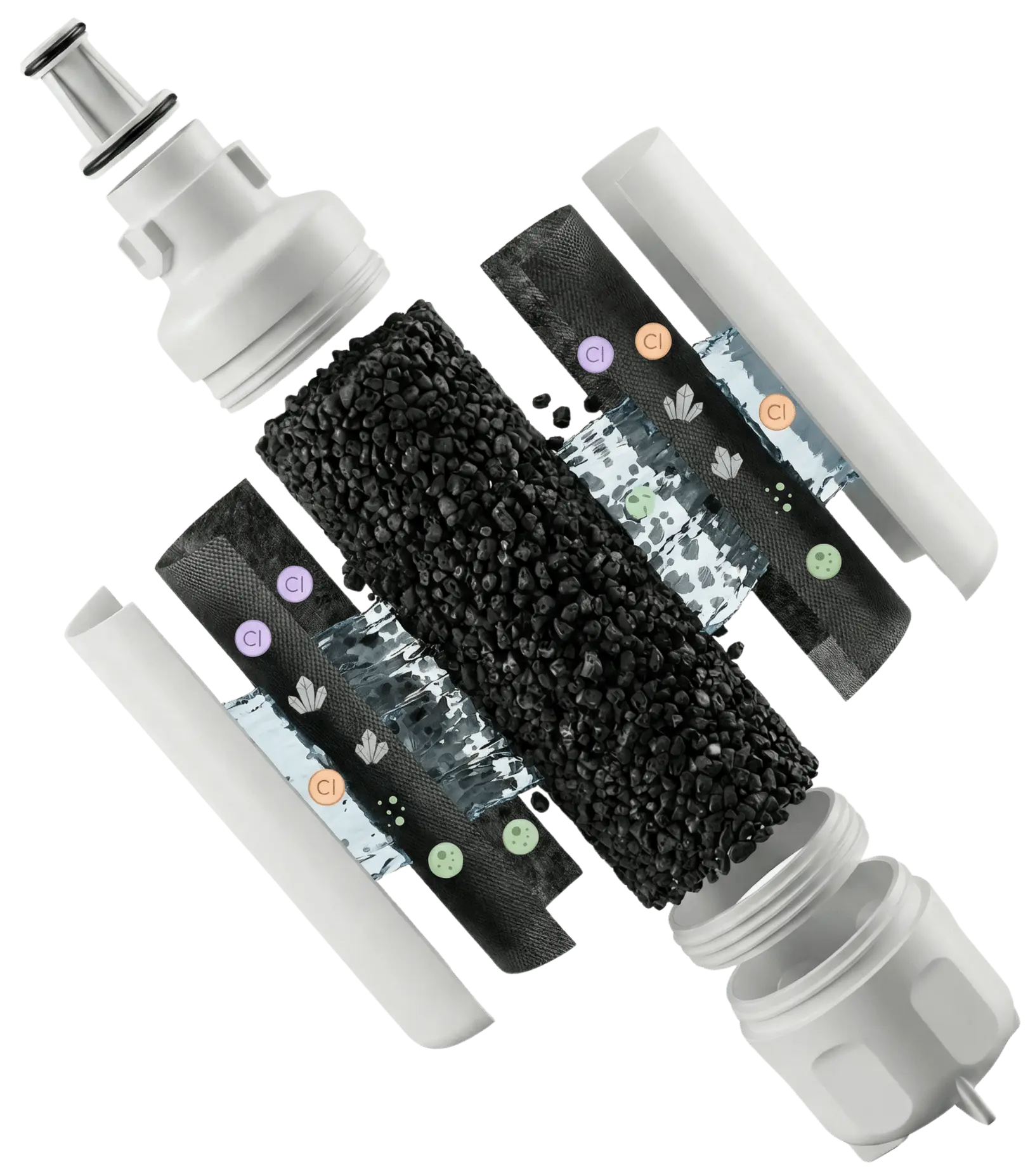 Reduziert Geruchs- und Geschmacksstoffe für frisches Trinkwasser.