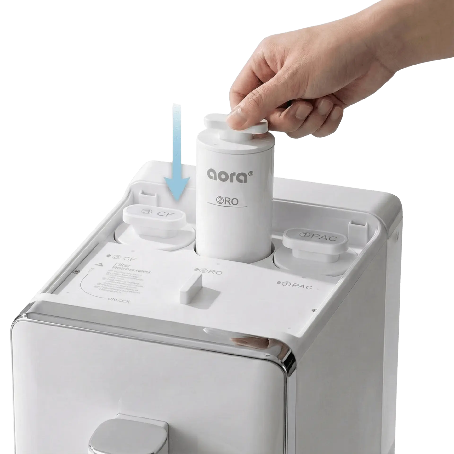 Erhalten Sie dauerhaft sauberes, wohlschmeckendes und ionisiertes Trinkwasser mit den Original AORA® Ersatzfiltern für W23 & W19. Das 3-stufige Filtersystem entfernt effektiv Kalk, Schwermetalle, Mikroplastik und Keime. Für beste Leistung: PAC- und CF-Filter alle 6 Monate, die RO-Membran alle 12–24 Monate wechseln. Quick-Change-System für mühelosen Filtertausch in Sekunden – ganz ohne Werkzeug.