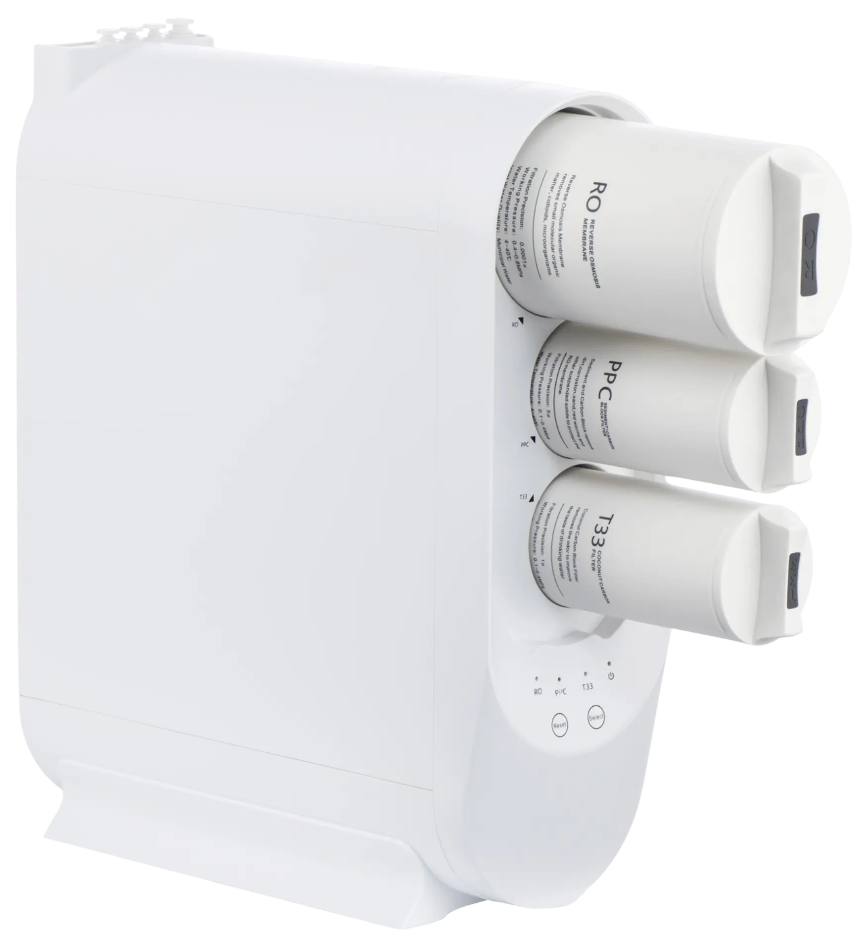 PPC-Vorfilter, RO-Membran und T33-Nachfilter sorgen für sauberes, geschmacklich optimiertes Osmosewasser.