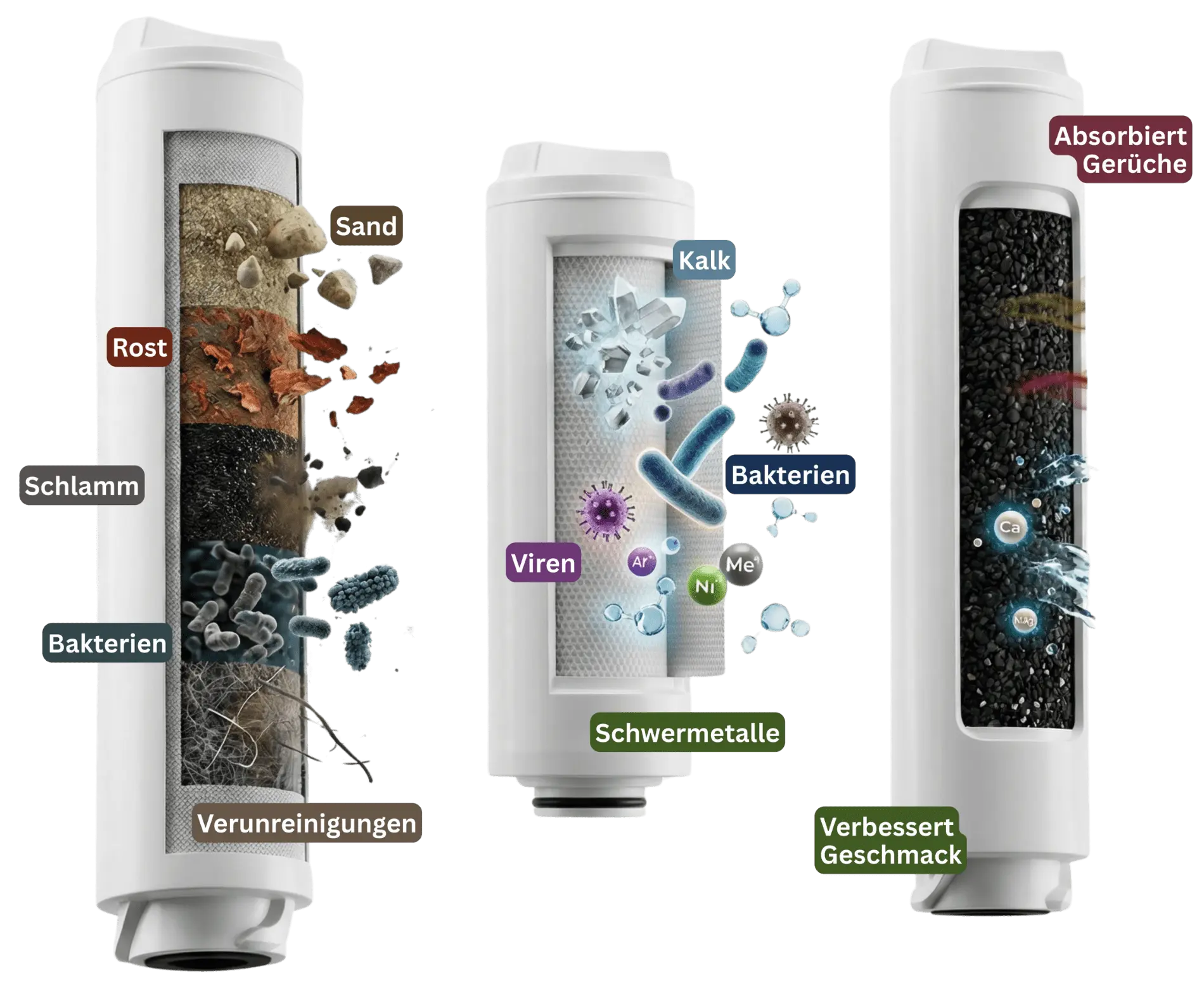 Entfernt Kalk, Bakterien, Viren, Schwermetalle und gelöste Schadstoffe zuverlässig.