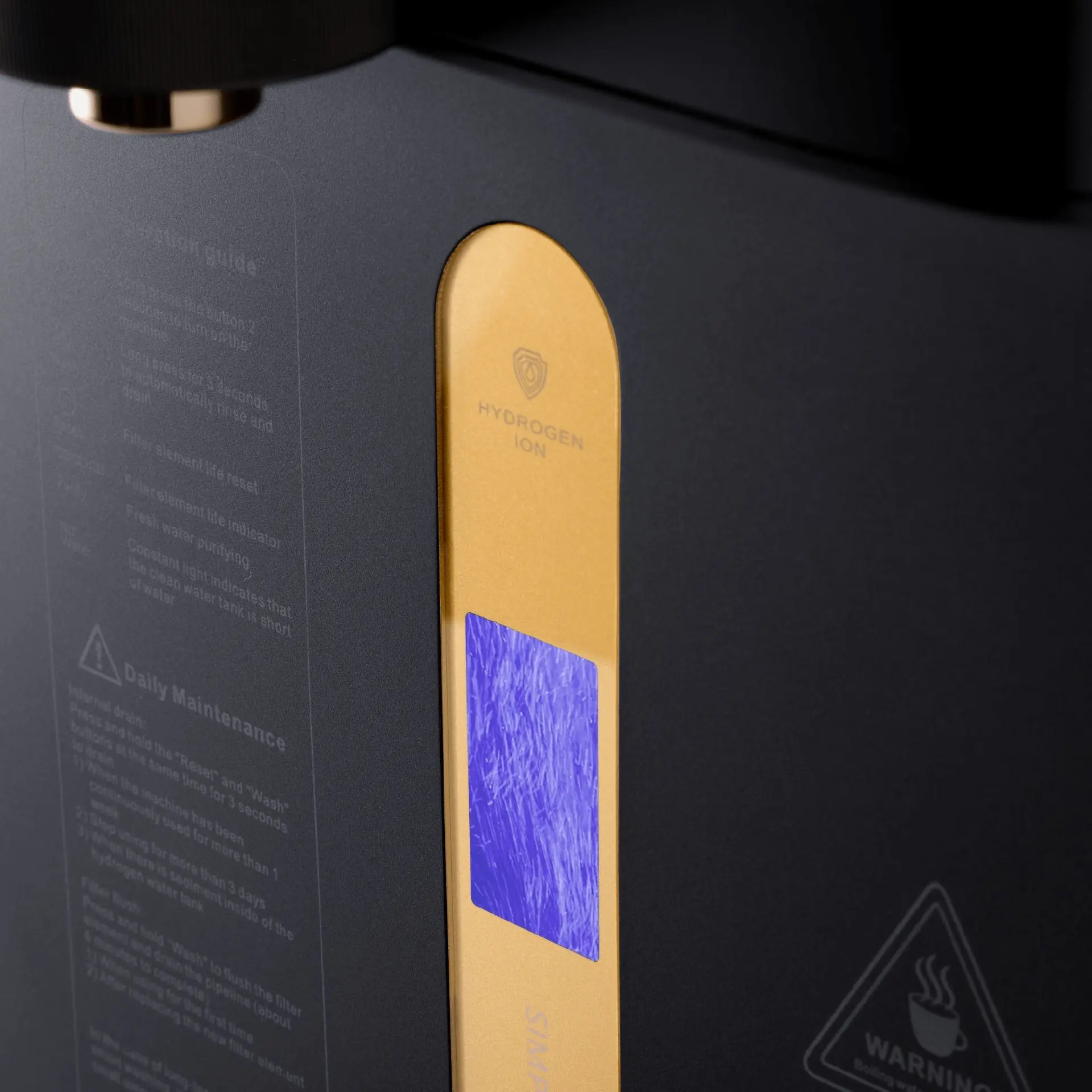 Osmosewasser, gekühltes Wasser, Heißwasser bis 100 °C und Hydrogenwasser – alles in einem Gerät kombiniert.