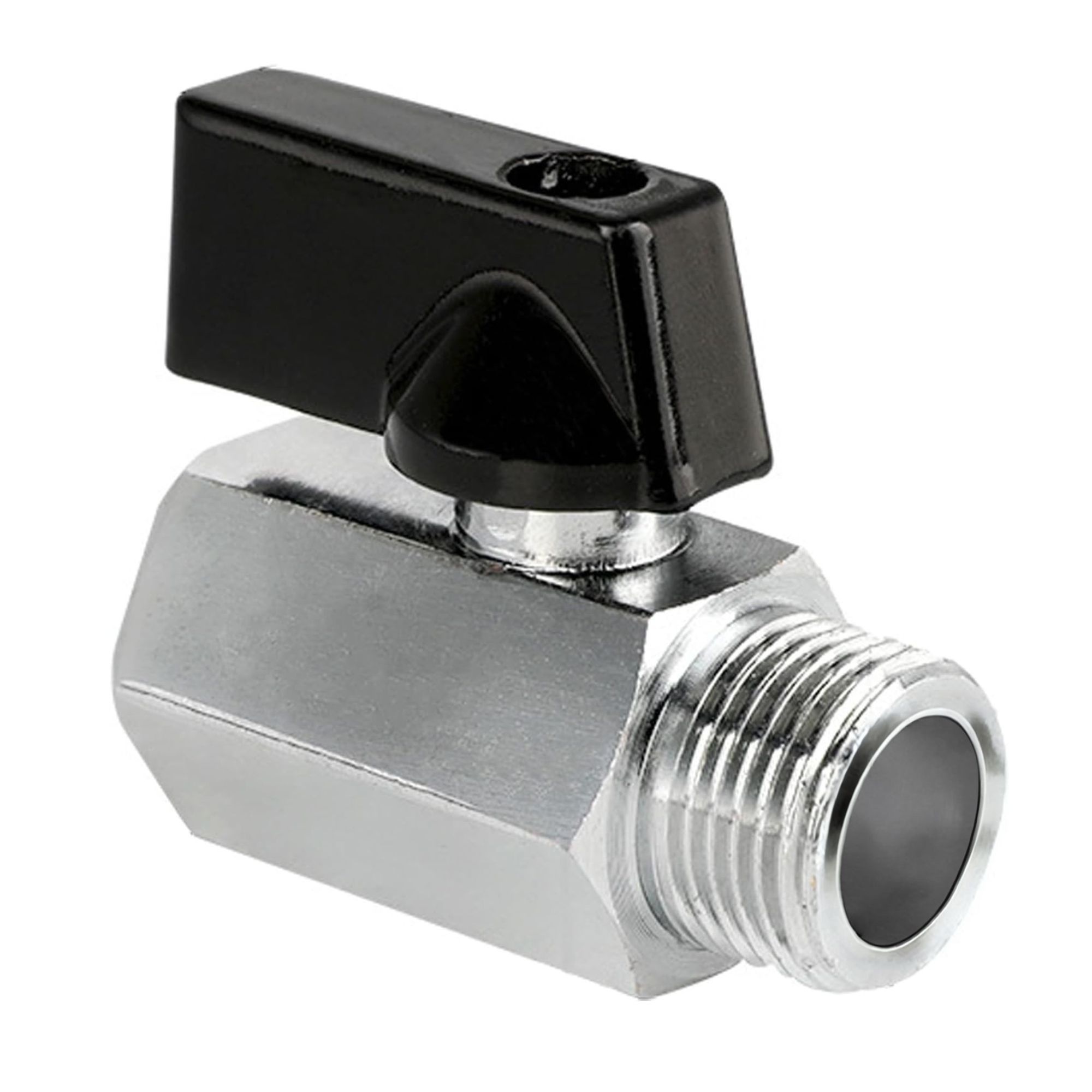 Messing Kugelhahn G3/8" IG x G3/8" AG, DN10 Absperrhahn verchromt, Innen G3/8" (Ø15,3mm) x Außen G3/8" (Ø16,2mm)