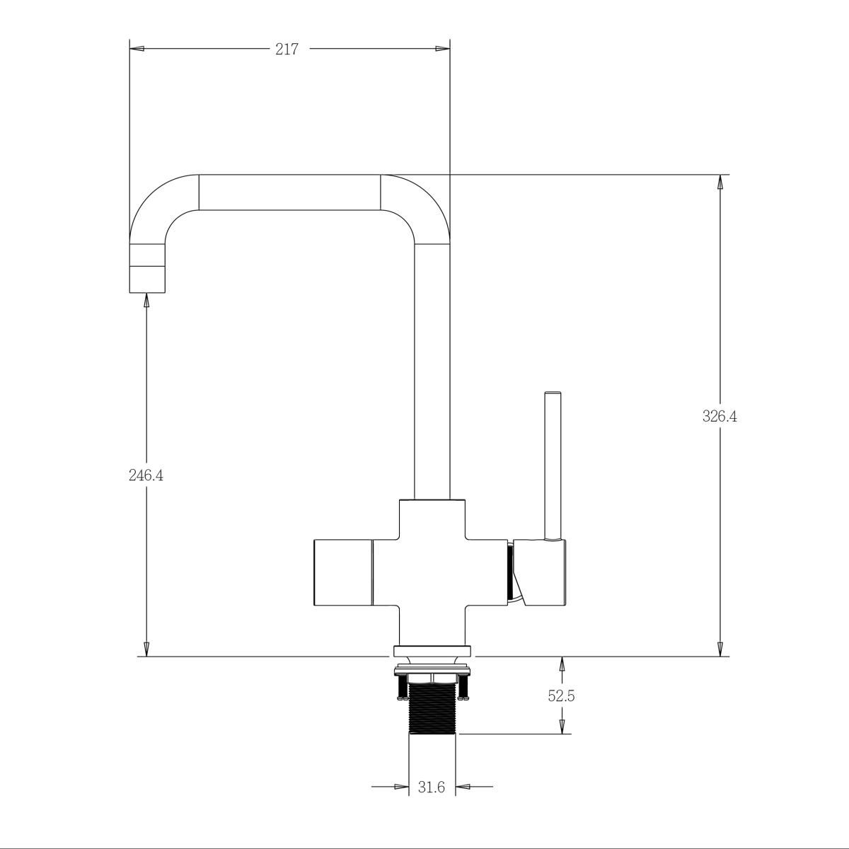 - SPRUDELUX® 5-Wege-Armatur U-Auslauf schwarz für Untertisch-Tafelwasseranlage Diamond FLAME